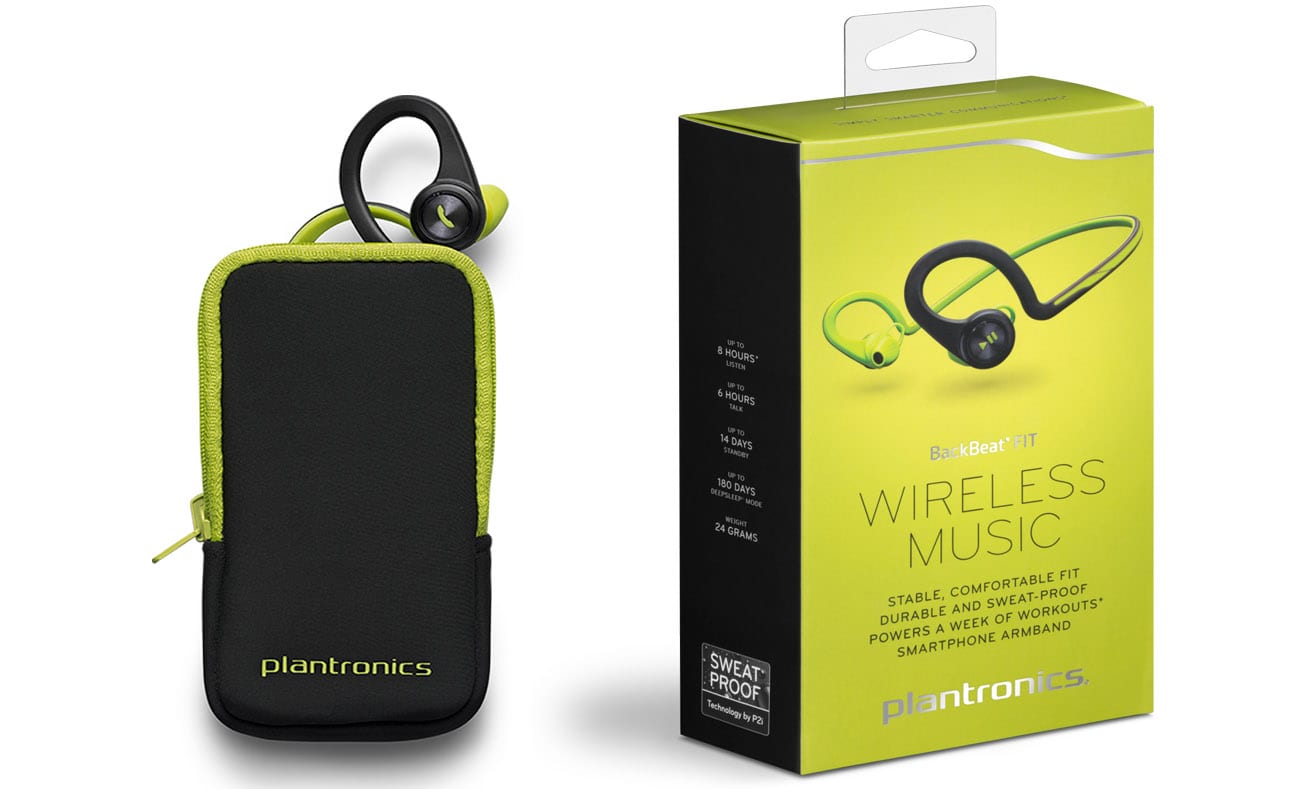 Słuchawki Back Beat Fit Plantronics wyróżniają się solidną budową, a dzięki antypotliwym materiałom z których są wykonane nie przecierają, ani nie odbarwiają się podczas szczególnie intensywnych treningów. Dzięki wsuwanym końcówkom, oraz zaczepom na uszy nie przesuwają się i nie spadają. Dodatkowo sama douszna część porusza się o 20 stopni, tak więc możemy ją dopasować pod odpowiadającym potrzebom naszego ucha – kątem.