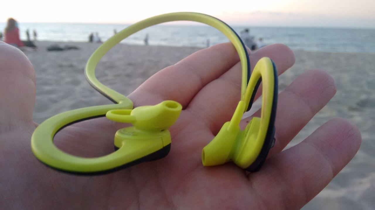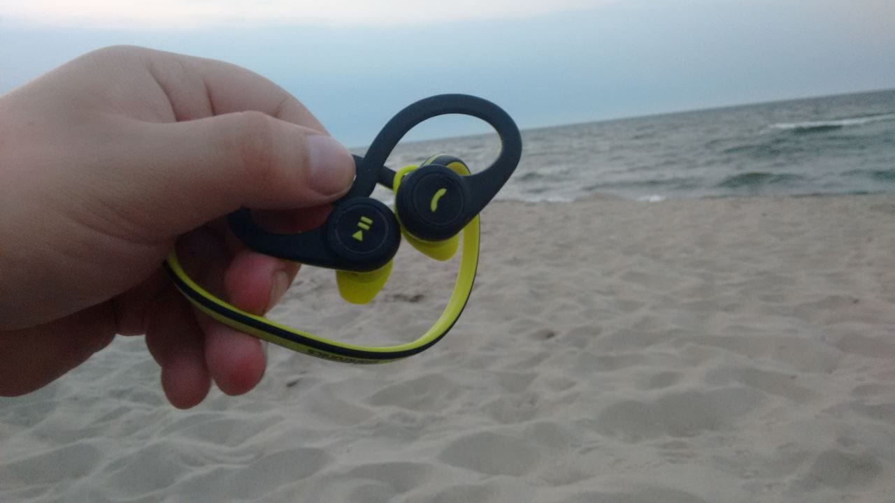 Trzeba powiedzieć jedną rzecz z góry, one nie służą generalnie do chodzenia w nich po ulicy i słuchania muzyki. To są słuchawki sportowe z plusami i minusami tego rozwiązania. Skoro więc to seria „Fit” to potraktujemy ją w ten właśnie sposób. Słuchawki przepuszczają dźwięki otoczenia i to dość dobrze, zwłaszcza na głośnościach poniżej średniego ustawienia. Mimo że jak widać są dokanałowe. Czemu? Dla zwiększenia bezpieczeństwa przebywania na ulicy, dzięki czemu nie jesteśmy totalnie odcięci od świata. Drugą kwestią jest bateria, która wystarcza na około 8h słuchania muzyki – daje nam to powiedzmy tydzień swobodnych treningów na jednym ładowaniu, ale jak sami widzicie te dwie rzeczy skutecznie utrudniają posługiwanie się nimi na co dzień w opcji „chodzenia po mieście”, gdyż spotkania z ładowarką mogą być częstym rytuałem w Waszym muzycznym życiu. Warto zwrócić uwagę, że zastosowana tu technologia Bluetooth jest bardzo energooszczędna i nawet wyładowany telefon gra na nich jeszcze kilkanaście do kilkudziesięciu minut.