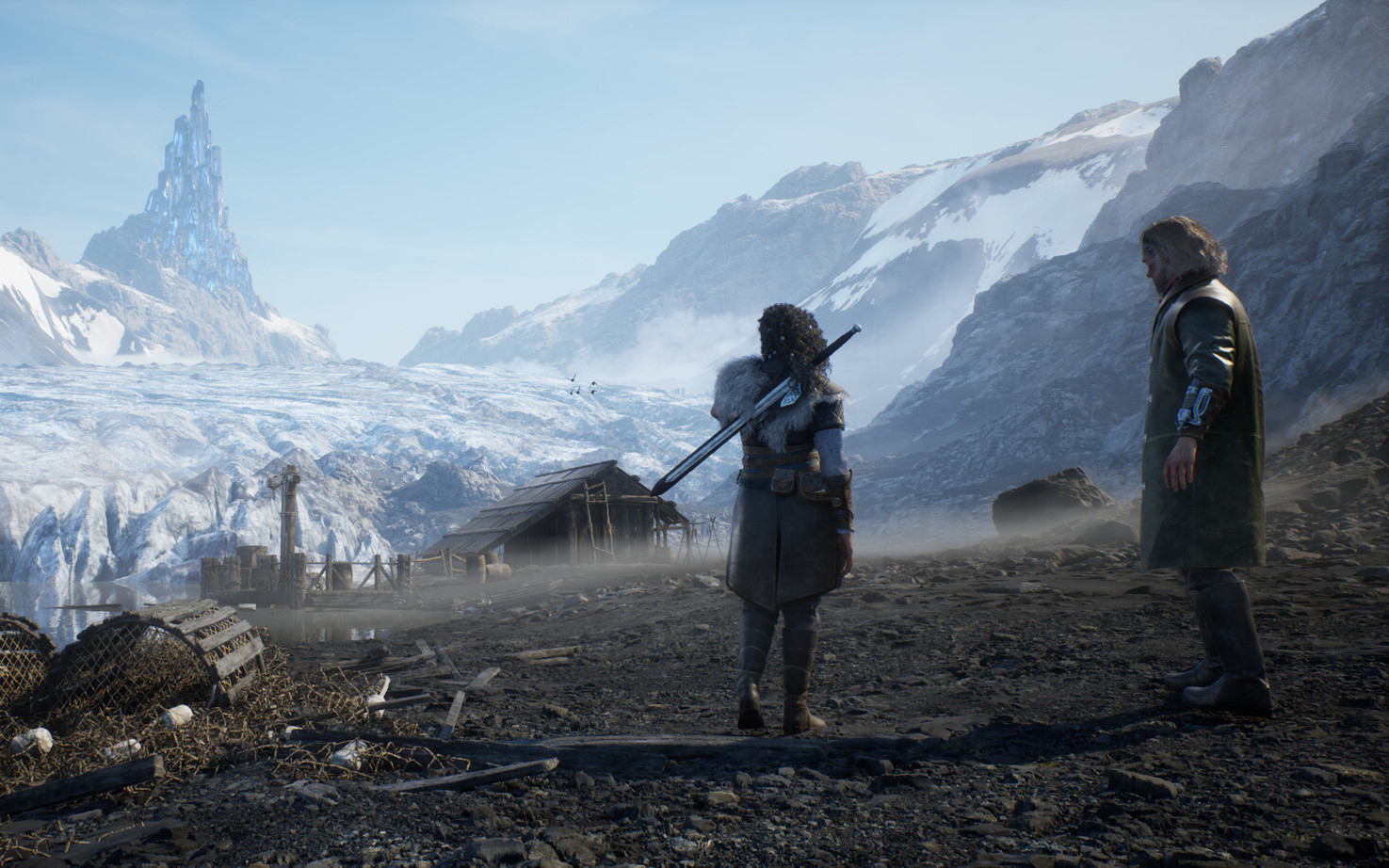 Pejzaże w Echoes of the End naprawdę potrafią urzec – gra stawia na monumentalne widoki i inspiracje islandzkimi krajobrazami. Złociste lasy, ośnieżone szczyty czy lawowe jaskinie wyglądają świetnie, a detale w otoczeniu i gra świateł budują bardzo klimatyczny świat. Również postacie prezentują się znakomicie – zarówno projekty, jak i mimika robią wrażenie. Ryn i Abram wyglądają wiarygodnie, a ich animacje twarzy i motion capture wypadają naprawdę dobrze.