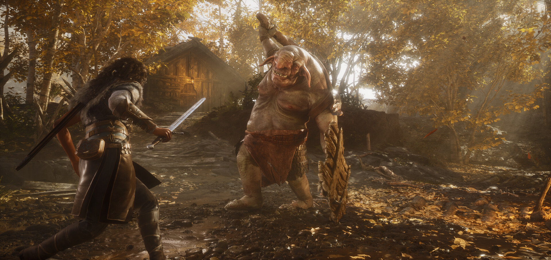 Pejzaże w Echoes of the End naprawdę potrafią urzec – gra stawia na monumentalne widoki i inspiracje islandzkimi krajobrazami. Złociste lasy, ośnieżone szczyty czy lawowe jaskinie wyglądają świetnie, a detale w otoczeniu i gra świateł budują bardzo klimatyczny świat. Również postacie prezentują się znakomicie – zarówno projekty, jak i mimika robią wrażenie. Ryn i Abram wyglądają wiarygodnie, a ich animacje twarzy i motion capture wypadają naprawdę dobrze.
