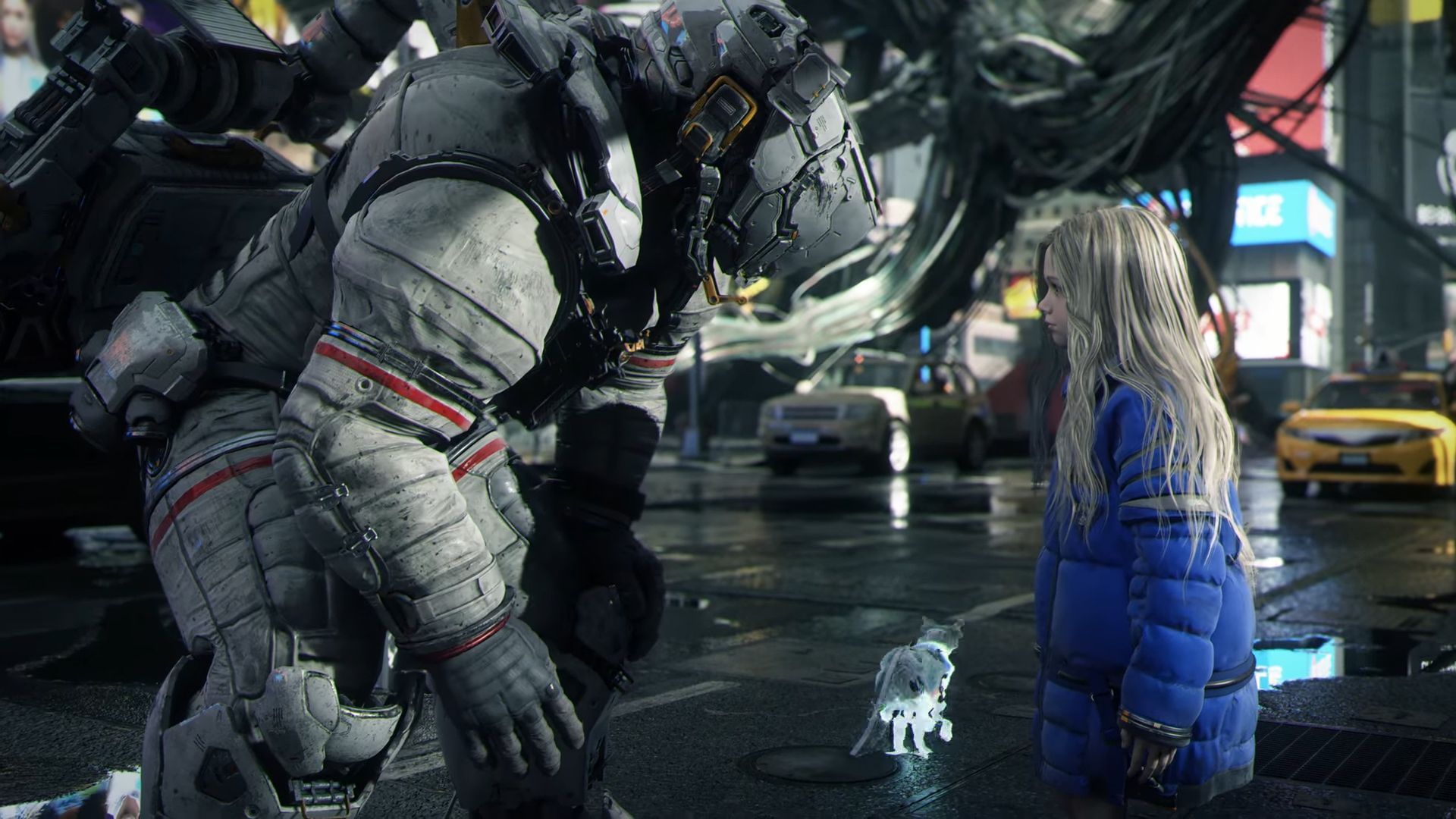 Pragmata zabiera nas na księżycową stację badawczą, która dawno przestała być zwykłym kompleksem laboratoriów. Dziś to jeden wielki problem, w dodatku opustoszały. Kontrolę przejęła zbuntowana sztuczna inteligencja, zarządzająca siecią robotów zabezpieczających – i, co nie zaskakuje, nie jest szczególnie gościnna wobec żywych intruzów. Klimat jest chłodny, techniczny, ale bez taniego straszenia – bliżej tu do naukowego sci-fi z nutą paranoi niż do horroru. Wchodzimy w to wszystko jako Hugh – ciężki skafander, jetpack i arsenał pod ręką. Szybko jednak okazuje się, że nie jesteśmy sami, bo na naszej drodze staje Diana – android o wyglądzie dziecka, z dziurami w pamięci, ale za to z intuicją do systemów stacji, jakiej można jej tylko pozazdrościć. Ten duet napędza całą grę – my działamy fizycznie, ona ogarnia wszystko, co świeci, piszczy i próbuje nas zabić. Za pomocą hakerskich mocy. Sama stacja robi tu świetną robotę. Od zimnych, metalicznych korytarzy, przez powierzchnię Księżyca z obniżoną grawitacją, aż po niepokojące sekcje przypominające fragmenty ziemskiej cywilizacji odtworzone przez AI. Wszystko trzyma się jednego motywu i daje poczucie, że jesteśmy częścią większego eksperymentu – nawet jeśli gra nie zawsze tłumaczy zasady od razu.
