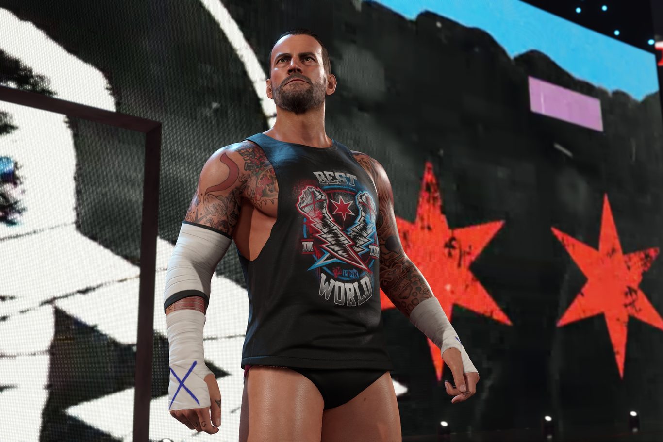 Sam zamysł i świat gry to klasyczne WWE 2K – pełne odzwierciedlenie telewizyjnego show. Wejściówki, pyro, wszechobecna radość i to charakterystyczne poczucie, że każdy zawodnik ma ego większe niż arena, w której walczy. Wskakujesz w buty swojej ulubionej gwiazdy albo własnoręcznie poskładanego frankensteina i od razu lądujesz w samym środku tej wielkiej, przerysowanej machiny do robienia sportowej telenoweli.